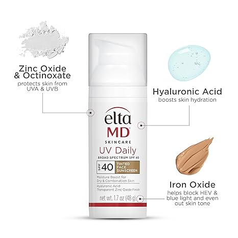 EltaMD UV Daily SPF 40 Tinted Face Sunscreen Moisturizer, Tinted Moisturizer for Face with SPF, Great for Dry, Combination, and Normal Skin
