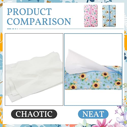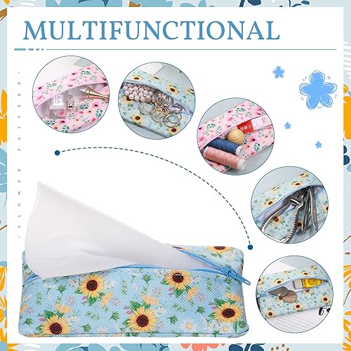 Kigeli 2 Pieces Purse Tissue Holder Travel Tissue Pouch for Purse Fabric Zipper Enclosed Pouches Reusable Flower Pattern Paper Holder for Coins, 5.25 x 3 Inches(Floral Flower Print)
