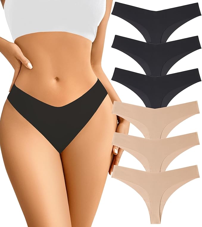 Seamless Thongs For Women No Show Underwear Women Pack Breathable Panties for Women Colorful 6 thongs